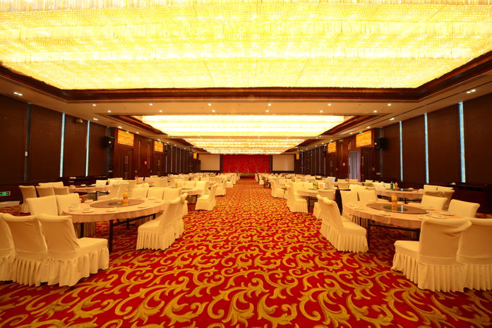 宴会厅总面积约为830平方米,最多可容纳60桌餐席、600余客人。设有活动舞台、奢华吊顶水晶灯,无立柱式的宴会厅富丽堂皇,为本地区最大的会议及宴会场所之一。根据您的需求,可举办各种形式的大中型会议、公司年会、婚宴以及主题宴会等。在餐饮方面为您量身定做,以致满足您味觉上的享受,并给予无限温暖和友好的服务。